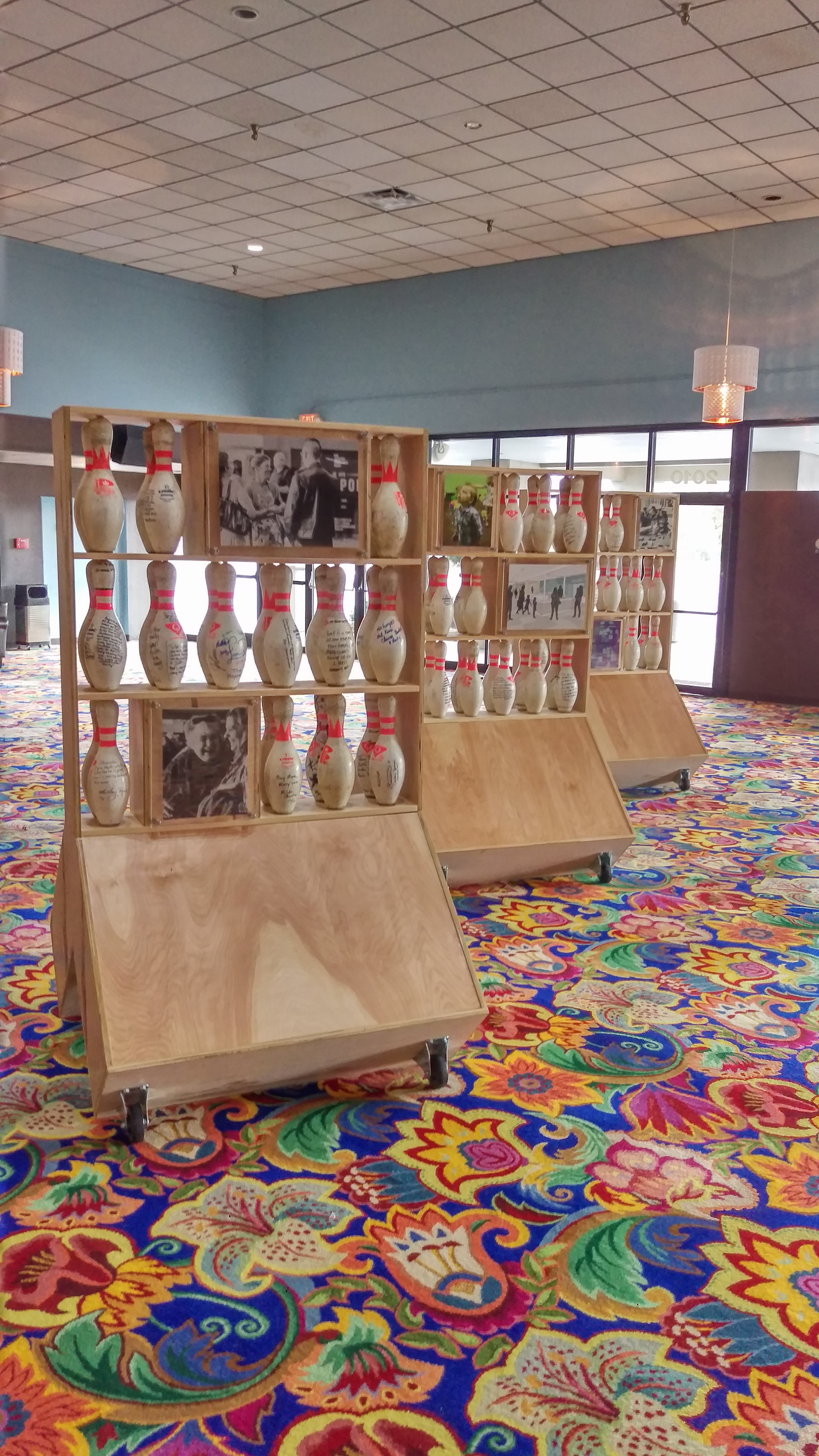 Bowling Pin displays built for SouthPoint Church to recognize their members who pledged to fund the renovations of the old bowling alley that the Church has